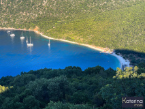 The panoramic vistas from the monastery encompass breathtaking views of Antisamos beach, as well as the surrounding areas of Sami, Agia Efimia, and Ithaca island.